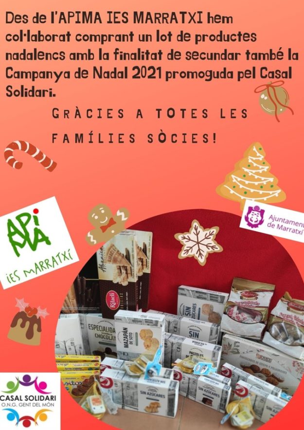 El nostre centre ha posat en marxa una campanya de recollida de productes nadalencs juntament amb el Casal solidari de Marratxí, i nostra APiMA ha col·laborat comprant un lot de dolços. Gràcies a les famílies sòcies! Us animam que tots vosaltres també aporteu el que pugueu a aquesta campanya. Recordau que la recollida està oberta…